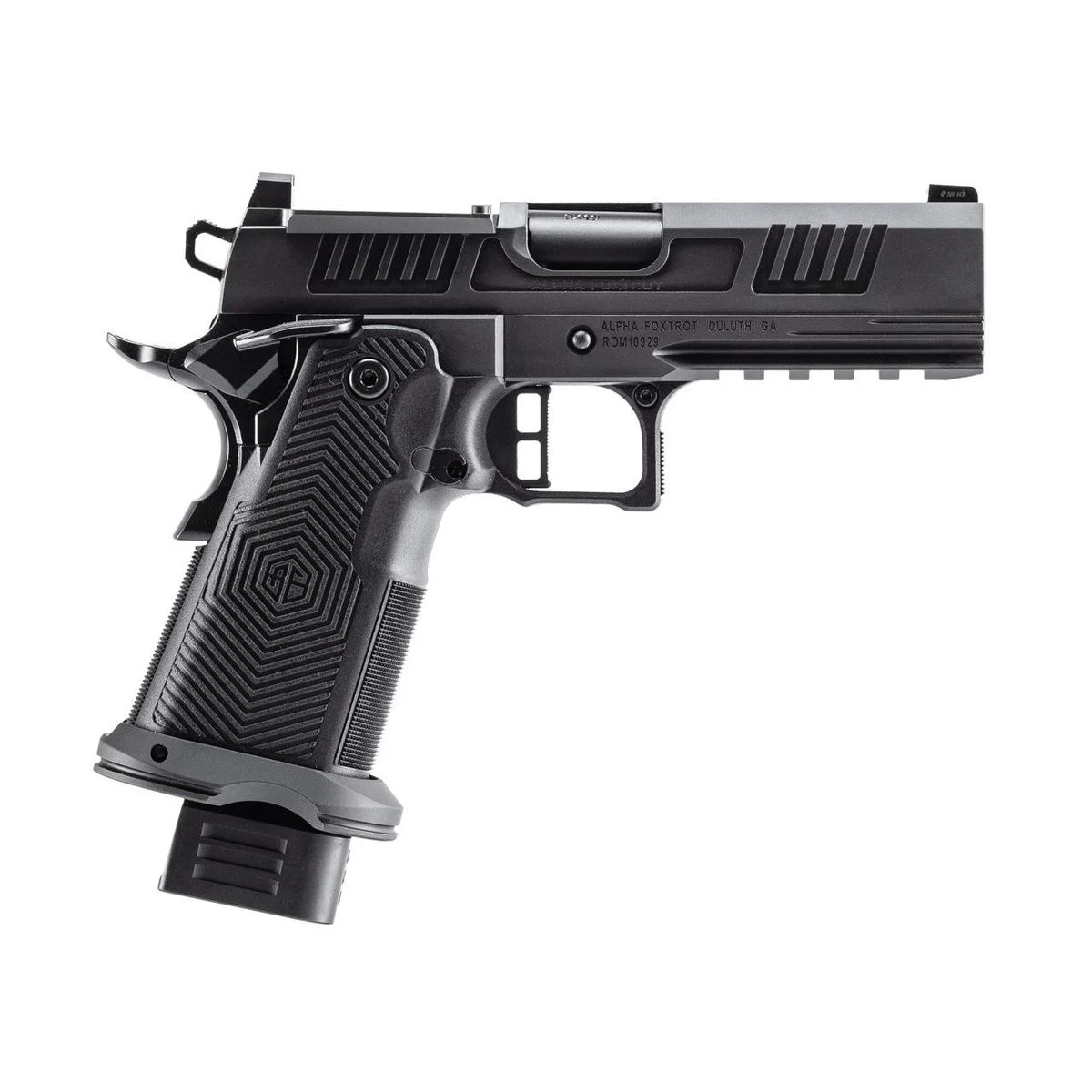 $467.39Alpha Foxtrot AF1911-Romulus MOS Adapter Handgun 9mm Luger 17(1) & 20rd(1) Magazines 3.5″ Bull Ramped Barrel DLC Black